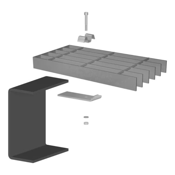 As grades de piso eletrosoldadas são fixadas através de grampos de fixação U, exclusivos para fixar as grades em vigas U, ou grampos de fixação WU, podendo ser fixadas em vigas W e U.